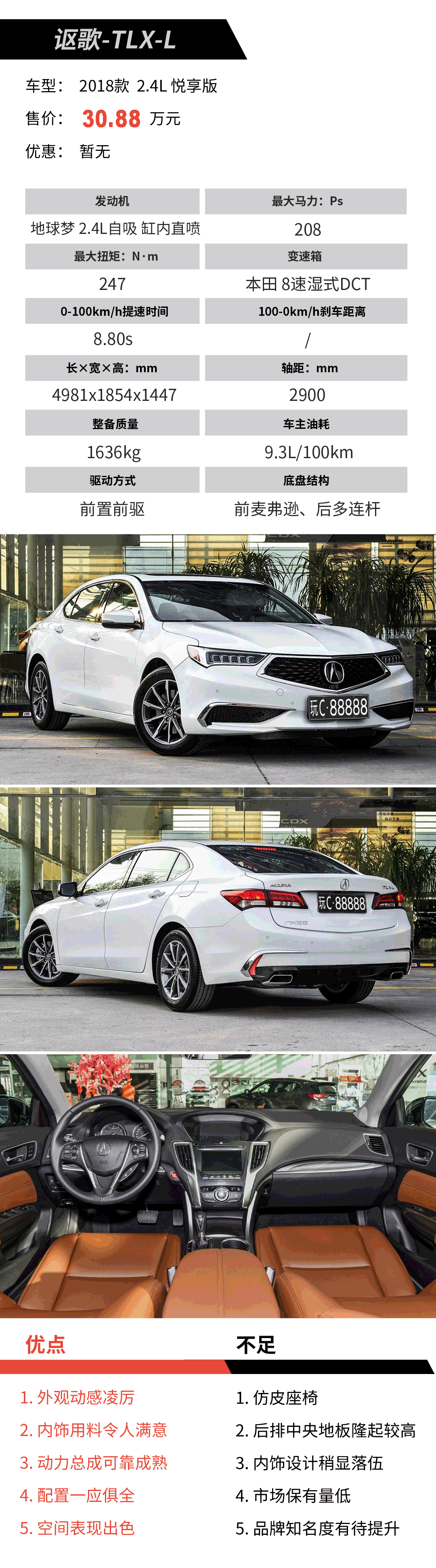 凌厉激进的外观、傲视同级的车长令人耳目一新,但动力总成落伍于同级,内饰设计也乏善可陈,且杀手锏PAWS四轮转向系统在高售价版本上才有配备,这难免会令消费者感到诚意不足。因此,大多数人认为TLX-L只算是一款实力勉强足够、象征意义及战略意义大于实际商业意义的产品。