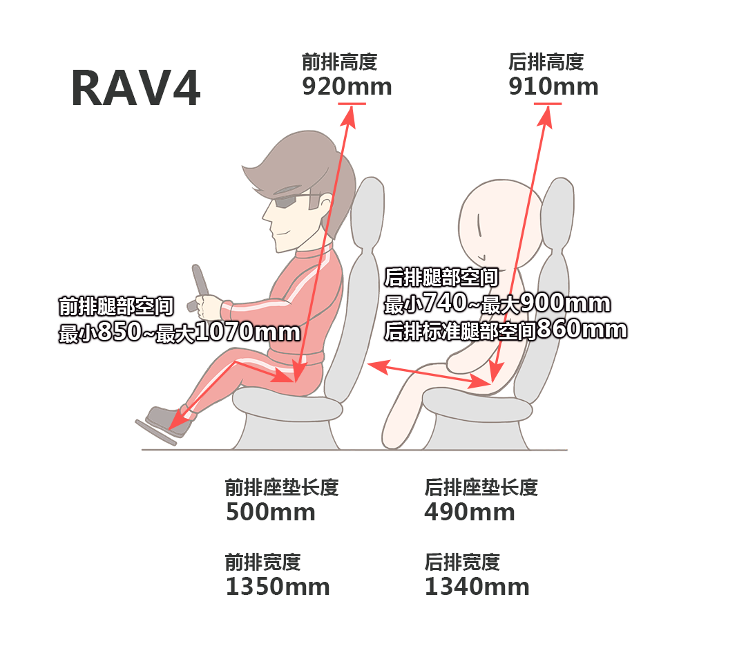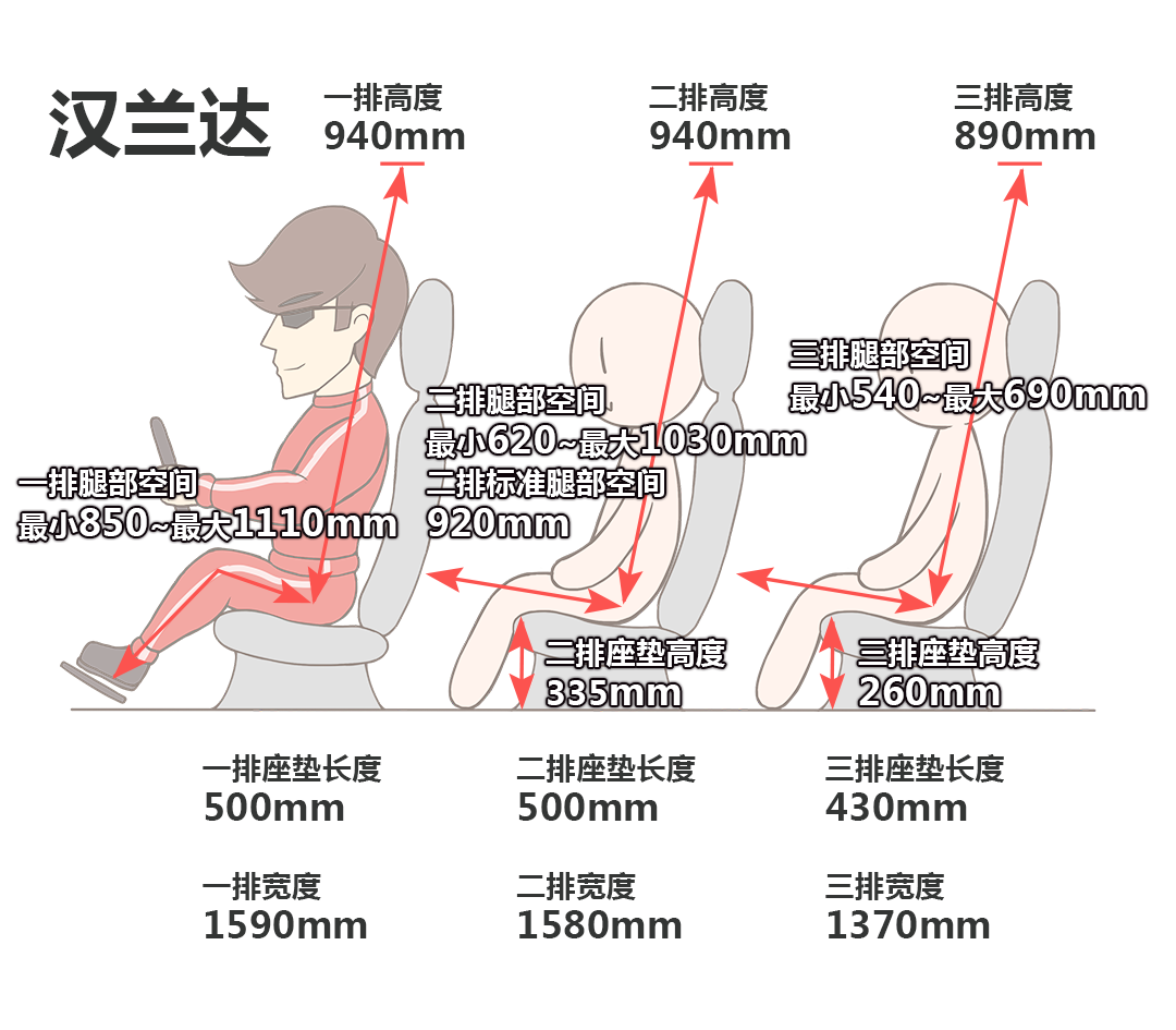 丰田算是比较实在的车企,汉兰达作为一辆中型SUV,在绝大部分空间数据上都表现得比RAV4要好,唯独是一排座垫长度与RAV4打了个平手。两车差距最大的地方在于一排和二排的宽度上,汉兰达都要比RAV4多出240mm。
