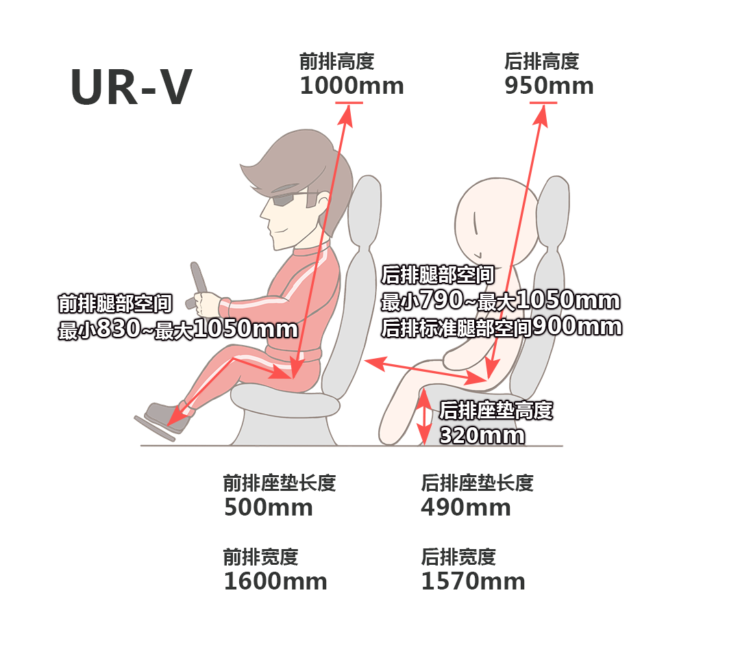 UR-V对比CR-V同样是优势明显,唯独在二排座垫高度上,UR-V要比CR-V矮了50mm,这点确实不应该。在二排座垫长度上,两车同样打成平手。至于差距最大的地方,则是二排腿部空间,足足有90mm。
