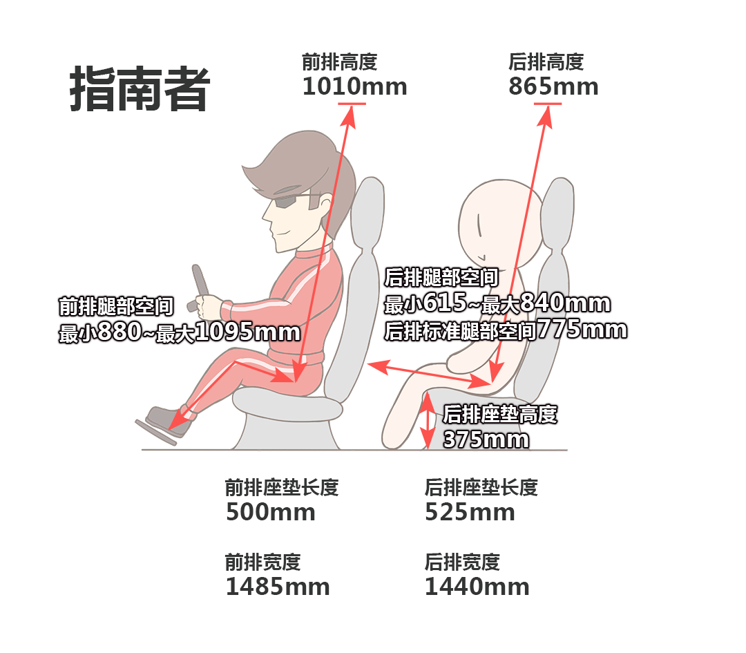 指南者在与自己“大哥”自由光的对比中,同样带给我们惊喜,前排高度足足比自由光多了70mm,超过3指的差距。在后排座垫长度上,指南者也比自由光做得好,多出了25mm,更好地承托住乘客的大腿。