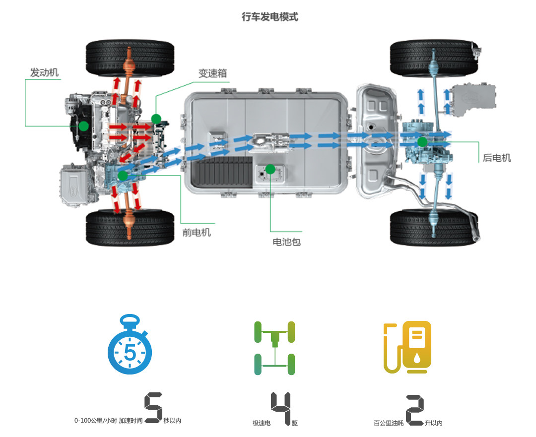 不仅可以做到全时四驱,双模版的元还有比亚迪家的542科技,得益于电动机的强大扭矩,可以做到百公里加速5秒以内,百公里油耗2升左右,4的意思就是上面说的全时四驱。