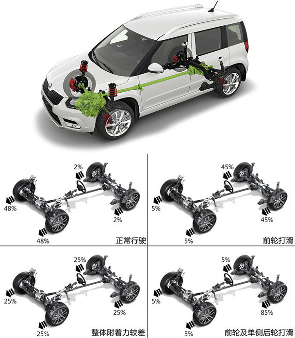 在20万左右这个价位的全时四驱并不多,除了上面介绍的两款,还有一款相对冷门小众的斯柯达Yeti,作为一款小型SUV,外形貌似讨不了很多人喜欢,有点年代的味道,不过顶配却搭载了一套全时四驱系统,虽然是比较老的第四代Haldex四驱系统。采用一个多片离合器式的中央差速器。