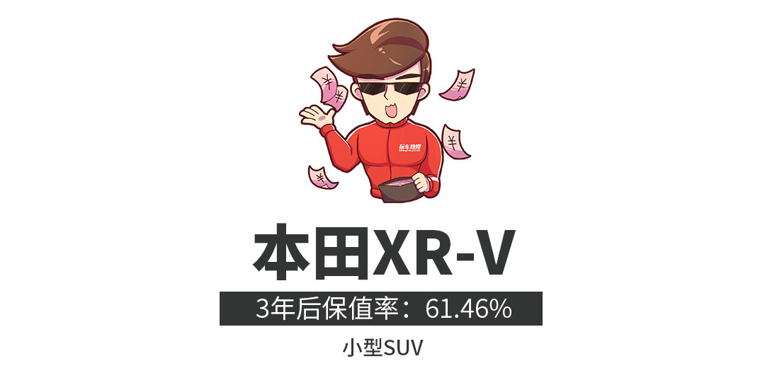 本田XR-V搭载着1.5L和1.8L两款自然吸气发动机,且相对于其他同级竞品来说,XR-V的全车储物空间大,乘坐空间大,外观造型时尚大气。在合资小型SUV销量排行榜上也经常拿到该等级的销量冠军。对于这么热卖的车型,买完后开3年再卖出去,打个6折也不算夸张。