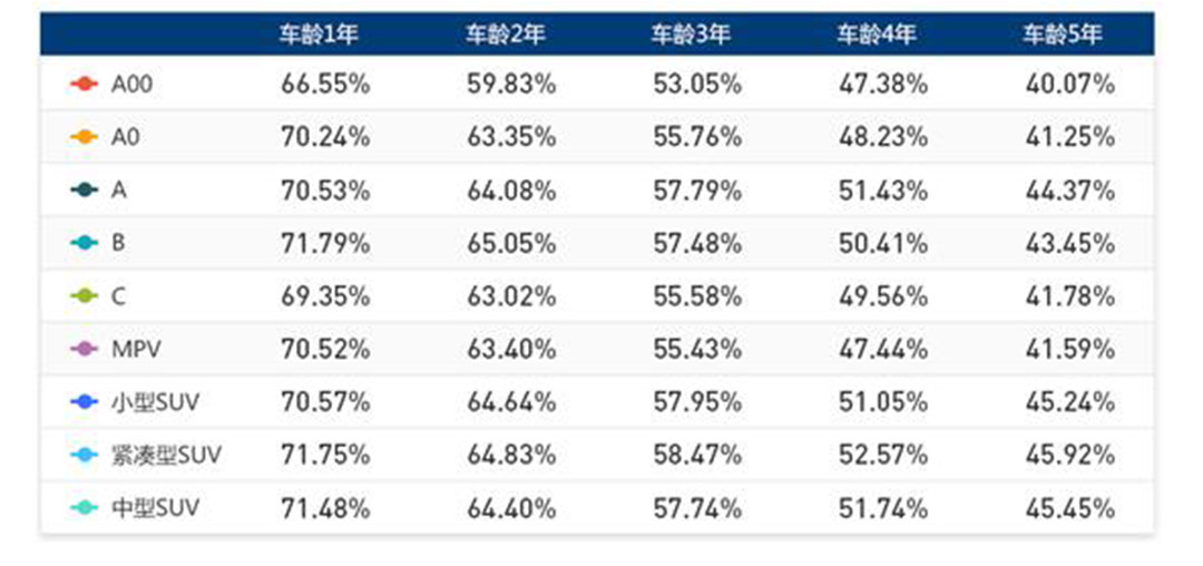 各个等级都有哪些保值率高的车型?