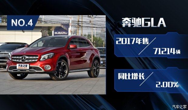 位居第三位的宝马X1在2017年成为了同级别的黑马,在2016年宝马X1并没有表现出强劲的销售状态,但进入2017年来,他以平均单月7600台的成绩,稳居同级别第一位,全年总销量91298辆,同比增长66.26%。虽然在初期,现款宝马X1受到了来自三缸机和前驱平台的质疑,但最终,凭借着为中国消费者加长的超大空间,在面对奥迪Q3和奔驰GLA时,宝马X1在同级别当中可谓傲视群雄,在接下来的2018年当中,相信目前X1的销量态势将继续保持。