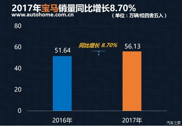 宝马在2017年全年销量为561320辆,相比2016年同比增长8.70%,不过相比增长更加强劲的奔驰以及下半年销量增长猛烈的奥迪而言,宝马在2017年全年销量上虽然获得了增长,但却屈居第三位。不过华晨宝马在2017年销量当中表现出色,全年销量达到386536辆,相比2016年增长29.36%。