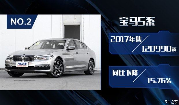相比之下宝马5系在2017年当中总销量120990辆,这当中包含了已经退市的5系F18和在售5系G38,所以在经历了5月老款停产,6月换代后的新一代5系,影响了最终的销量成绩,同比2016年下降了15.76%。所以在同级别中并没能超越老对手奥迪A6L,同时奔驰E级虽然仍位居第三,但差距已经被缩小到不足1万台。不过如果宝马5系在2018年当中能够保持当前的稳定销量,那么在面对已经老迈的奥迪A6L(C7)时极有可能迎来全面超越。