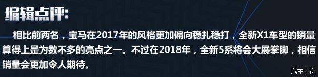 ★ 宝马品牌2017主力车型分析:3系/5系销量基本持平;宝马X1增长最快