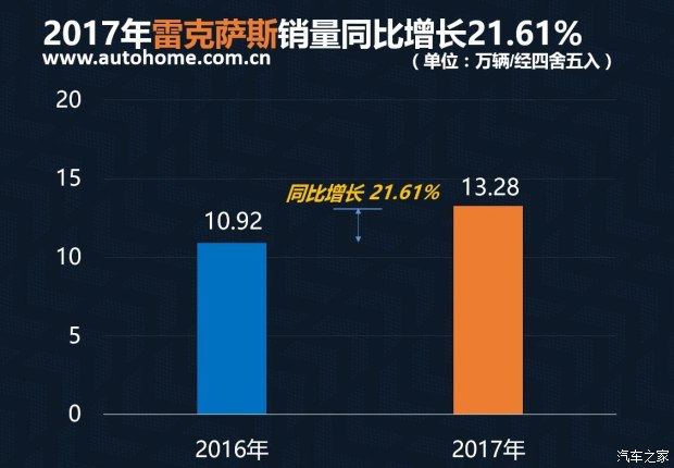 在过去的2017年中,雷克萨斯品牌在国内市场共销售了132864辆车型,相比2016年来看,增长了21.70%。在单一品牌中(捷豹路虎进行拆分)获得了第五名的好成绩。作为目前为数不多的全系列车型进口销售的品牌,雷克萨斯等增长令人惊喜。具体到车型来看,雷克萨斯ES车型占据了全系近乎一半的销量,而SUV车型雷克萨斯RX和雷克萨斯NX则分列第二和第三。