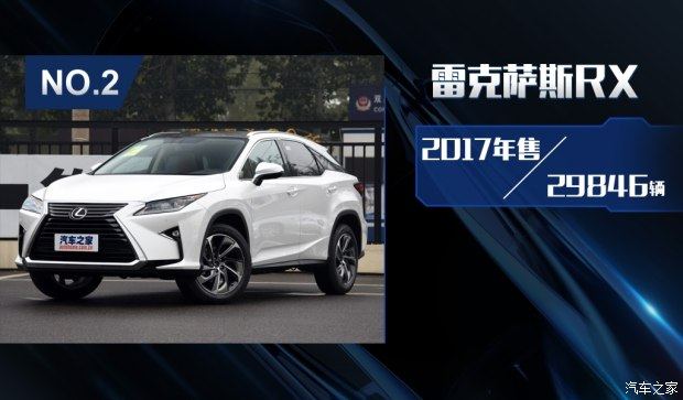 雷克萨斯RX车型在2017年共销售了29846辆,作为2015年底上市的车型,其在2017年仍然保持了不错的增长势头。从市场角度来看,虽然雷克萨斯RX车型定位于中大型SUV级别,但其售价区间与主流豪华品牌中型SUV车型重合较多,因此,其真正的竞争对手其实是瞄准了奔驰GLC以及宝马X3等车型,也正是这种跨级的策略,让雷克萨斯RX车型征服了不少消费者。