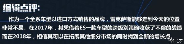 ◆ 2017年豪华品牌销量第五名——雷克萨斯