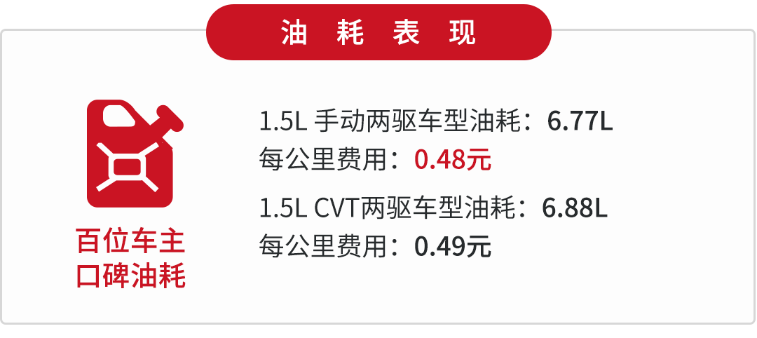 飞度则是典型的跑得快又少吃草,1.5L发动机代号L15B2,采用了缸内直喷技术。虽然有积碳的风险,但却能显著降低油耗。同时有i-VTEC可变气门技术加持,能更好地优化进气效率,1058kg的整备质量同样对低油耗贡献良多。