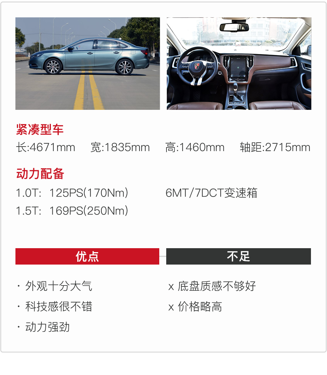 如果要说到高品质的自主轿车的话荣威i6绝对是不可忽视的一款车型,首先它有着自主品牌车型中非常强劲的动力,1.5T发动机的车型百公里加速能够轻松进入9秒内,再加上自动挡车型高效的双离合变速箱,荣威i6的油耗表现一样十分令人满意。
