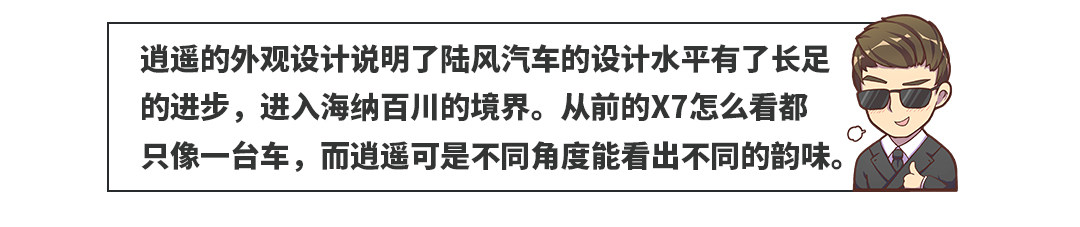 2018年开年之际,陆风给我们带来了一款名字很中国风的车型——陆风逍遥!这款车的颜值为“2018年十大高颜值车型”开了一个好头,就这外观就足够我给你吹一年。当然啦,逍遥的动力系统也不是盖的,在给你一副1.5T发动机的同时,也给你一副CVT无级变速箱,既保证了动力输出,也给你家用所需的平顺性。