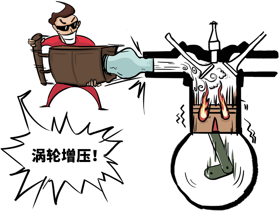 自吸发动机通过活塞运动吸进空气,吸入量一般与气缸容积持平。涡轮增压发动机先将空气进行压缩,再将其注入气缸,吸入量比前者要多。理论上,吸入更多空气并辅以更多喷油量,能获取更多动力。涡轮增压便利用该原理,在进气环节大做文章,在同排量下动力输出远胜自吸。