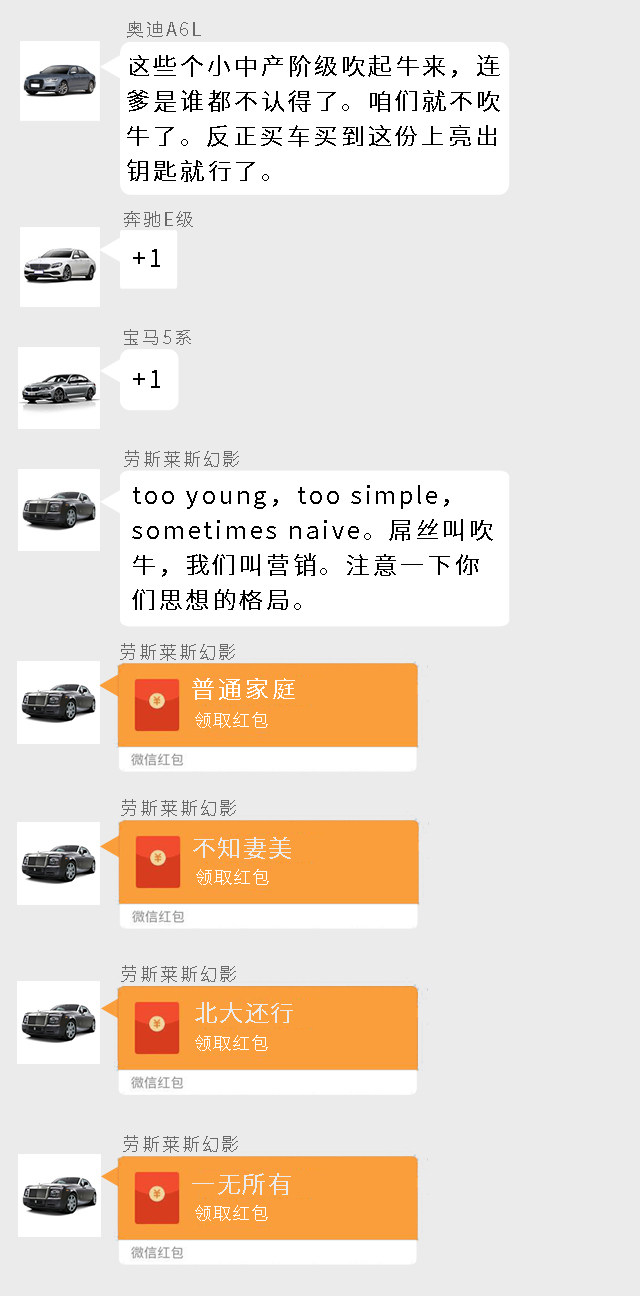 教授总结:不知教授邀请的这几位车型的装X方法,大家学会没有?如果没学会的话,请参考劳斯莱斯的做法。