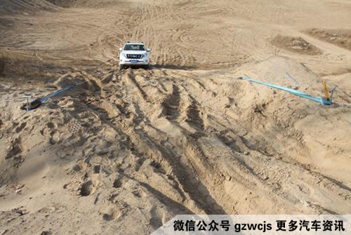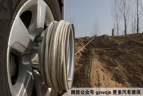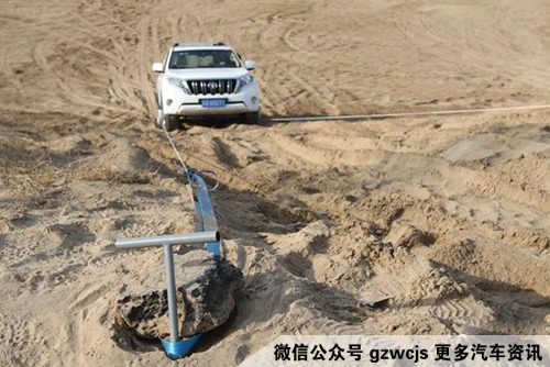 装好之后,慢慢踩下油门,随着导轮的转动,绳索被收缩,车子被徐徐拽了上去。沙锚的体型虽然很纤细,但在整个拖拽过程中纹丝未动,承受住了这辆自重2.15吨的车。