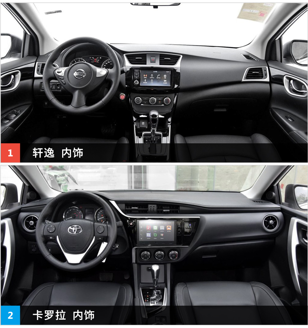 在内饰方面轩逸与卡罗拉的内饰设计都偏向于简洁朴素,但是两者在设计上也有所不同,在轩逸上采用更多圆润的线条,营造出温馨居家之感;而卡罗了更多是以平直的线条为主,显得更为沉稳低调。