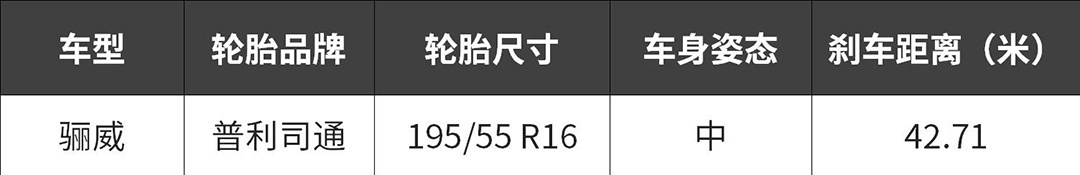 说明:我们将对比车辆的轮胎尺寸,品牌;车身姿态(优,良,中,差);刹车距离,为对比指标;以下数据,仅作参考。