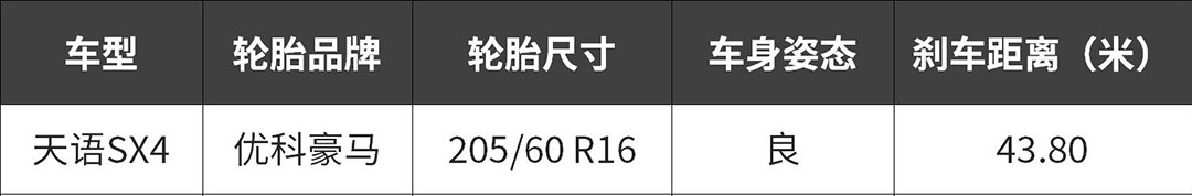 这一代的天语SX4相比前代车型后轮也使用了盘刹设计,理应刹车成绩较好,但事实真的是这样?