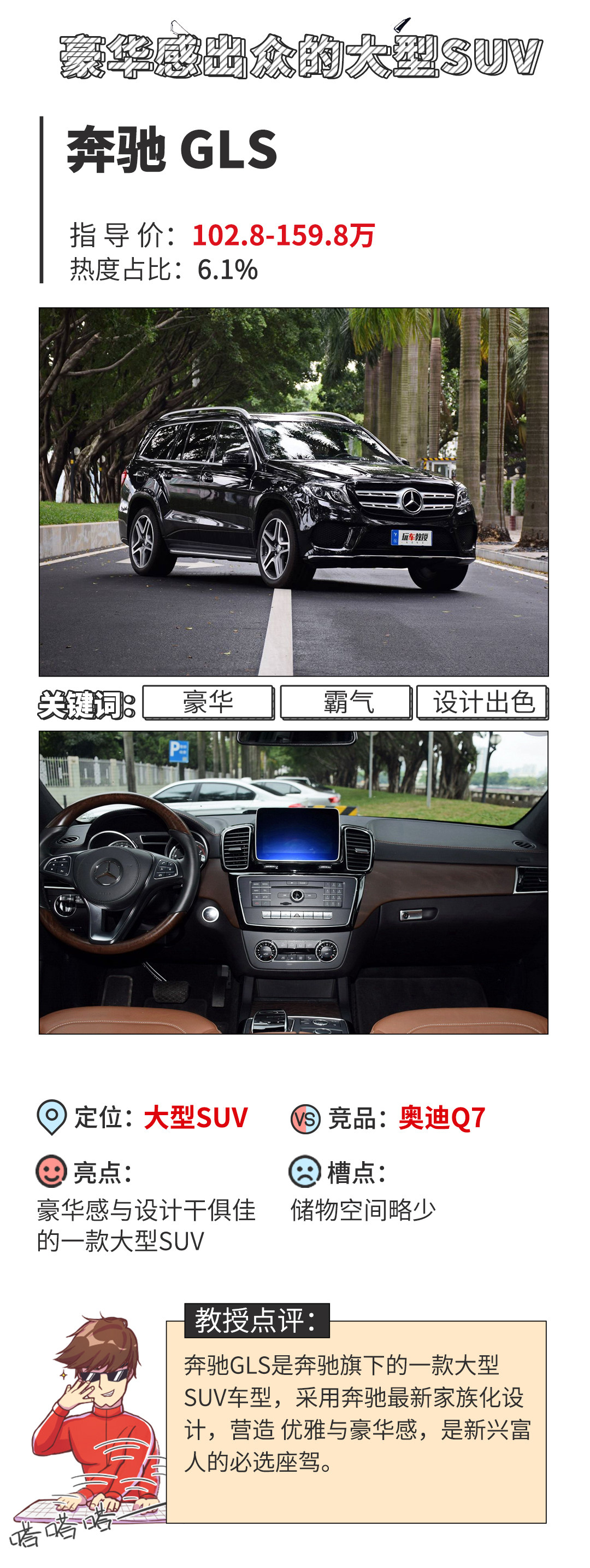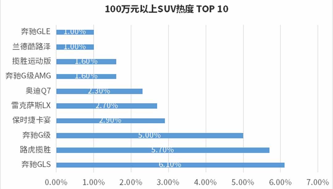 当预算超过100万时,基本上能够选择的都是大尺寸的SUV车型,品牌则集中在豪华品牌里。过去,向来是奥迪在这个级别拥有比较大的优势,但随着Q7由霸气变得精致后,市场热度变得越发低迷,而奔驰、保时捷与路虎等对手则不断提升,热度不断提升。