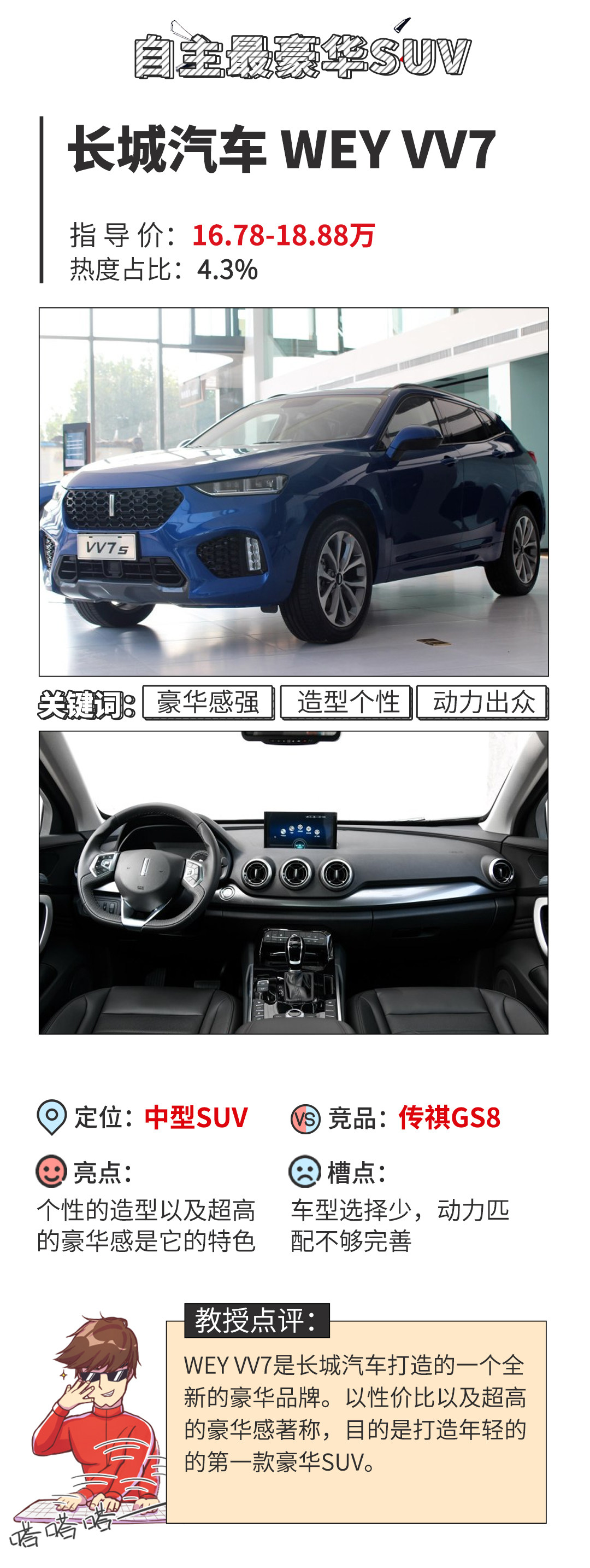WEY VV7的上榜确实比较意外,但从数据来看,前两名都是出自WEY品牌证明WEY的品牌经过一段的时间的传播已经有了不俗的知名度,国人对这个最豪华自主SUV品牌已经认可,要知道上个月榜首可是有着神车之称的CR-V,可能是受困于最近的”机油门事件“,导致热度有所下降。