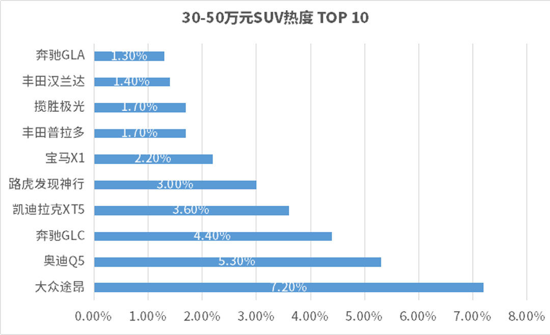 当预算超过30万后,大多数买车都会看重品牌,在这个区间中基本是豪华品牌的天下;然而榜首却是刚上市一年左右的途昂,确实有些意外;但在向来强调”大为美“的国情里,也属情理之中,加长在国内真的是万灵药。未来如果有谁能够打破这个格局,教授认为Jeep刚亮相的大指挥官无论在品牌力、还是尺寸都可以与途昂相抗衡。