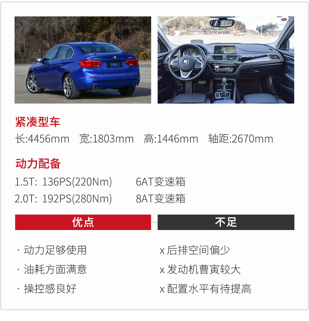 教授辣评:见证奥迪A3成功打下低价豪车市场后,宝马也不甘落后退出了宝马1系三厢版本,车型采用宝马最新的UKL前驱平台,虽然吐槽声不断,但是却能将价格降至冰点,况且就算是前驱它也是一台专注操控的宝马,这已经足够了!