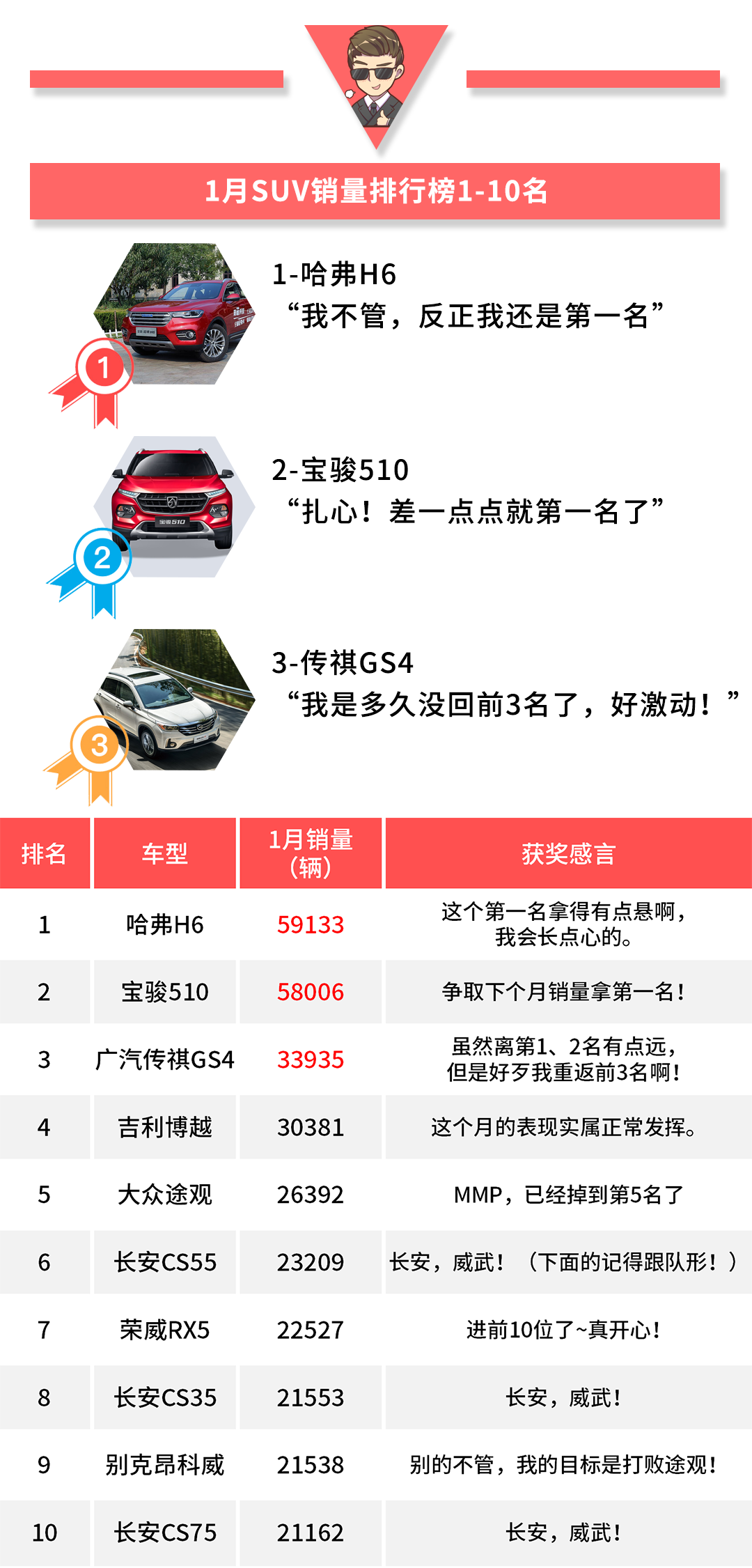 除了前十名,1月份的SUV销量榜还有什么看点呢?