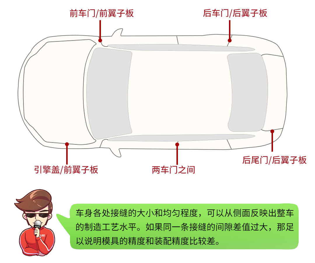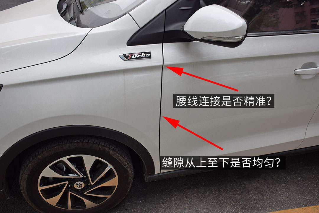 外观好看与否属于见仁见智,教授这里让你看外观并不是简单看看造型,而是去看不同板件间的接缝和漆面情况,不需要丈量具体数据,用肉眼观察即可。