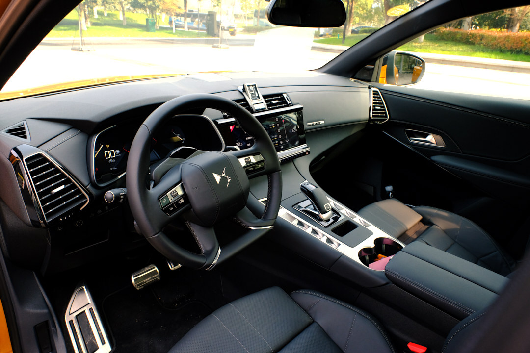 本次我们试驾的车型是DS 7的顶配车型:45THP Opera歌剧院版,这款顶配车型采用了全Nappa真皮包覆的内饰,无论是方向盘、车门饰板、中控台又或是座椅的背面,触感都是一流的;座椅的表链造型已成为DS车型的标志性设计之一,配合前排座椅的通风、加热和按摩功能,DS 7的座椅可以说在同级车型中难逢敌手。