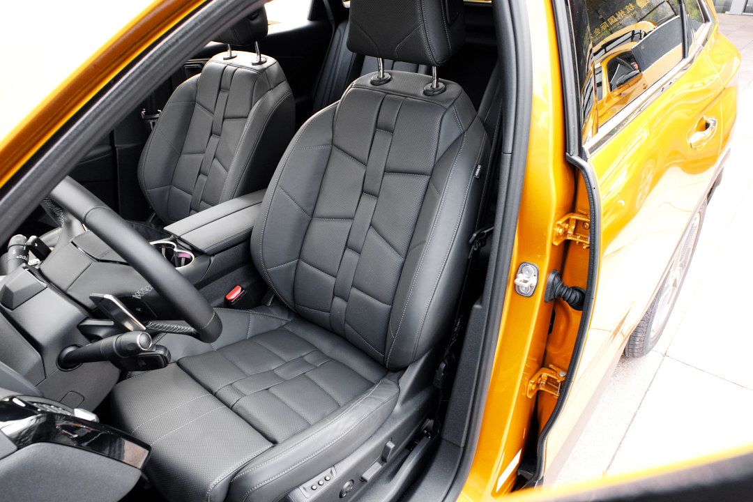座椅的表链式设计非常养眼,座椅在包裹性和承托性方面表现出色,前排座椅还提供了可手动调节的脚部支撑,舒适性进一步提升。