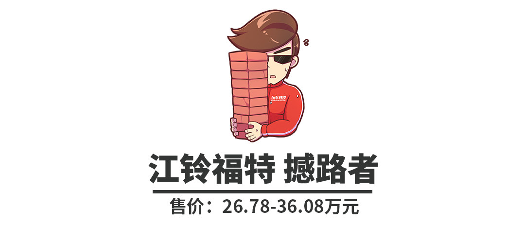 撼路者供2.0T汽油发动机+6AT、2.2T柴油发动机+6MT可选,前者最大马力245Ps、峰值扭矩360N·m;后者最大马力160Ps、峰值扭矩385N·m。