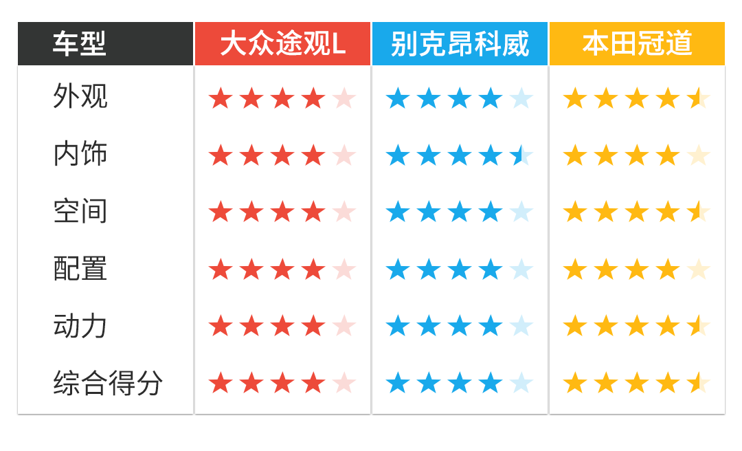 这三款中型SUV都是目前国内合资SUV中的佼佼者,别克昂科威和大众途观L的定位极其相似,无非就是途观L驾控好一些,昂科威的NVH更出色。至于冠道,它更注重视觉和听觉上的运动感,而且尺寸上也有优势。至于最终选择谁,我认为重点在于谁有现车供挑选。