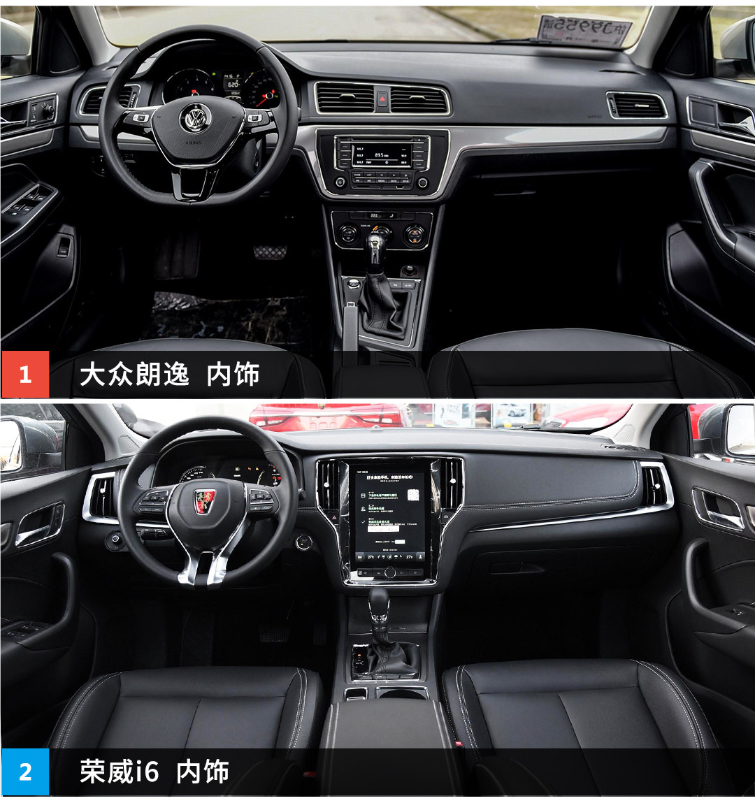 在内饰质感的营造上,朗逸虽是特供车,但依然延续了大众一贯保守而又不失档次的内饰风格。而荣威i6年轻简洁的设计无疑更符合时下的潮流,并且中控位置皮质的覆盖也让荣威i6在内饰观感的表现略优于朗逸。
