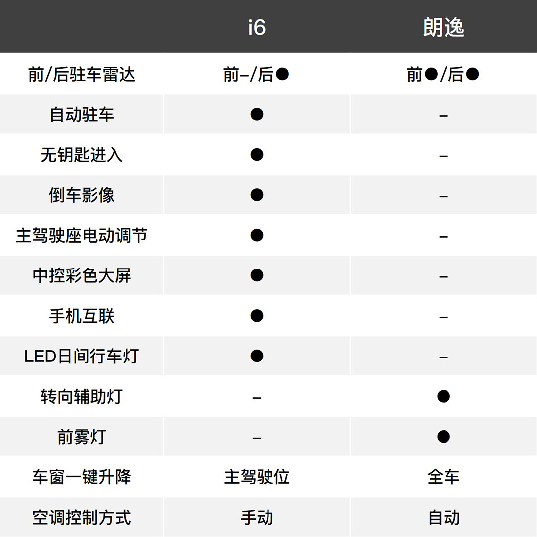 通过表格可发现,售价更便宜的荣威i6在配置明显厚道得多。诸如:无匙进入、主驾驶电动调节、中控彩色大屏等等都是朗逸所不具备的。