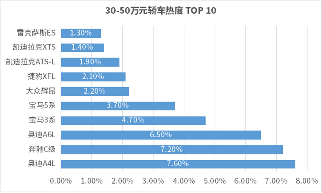其次,同样让教授意外的是在30-50万预算的区间中,奥迪A4L重回热度榜首。单纯以产品力比较,全新奥迪A4L拥有不逊色于宝马3系、奔驰C级,但历经换代后的奥迪A4L虽然销量数据可观,不过纯粹是优惠换销量,单纯挣吆喝;未来不改变这种现象,仍然不是办法。
