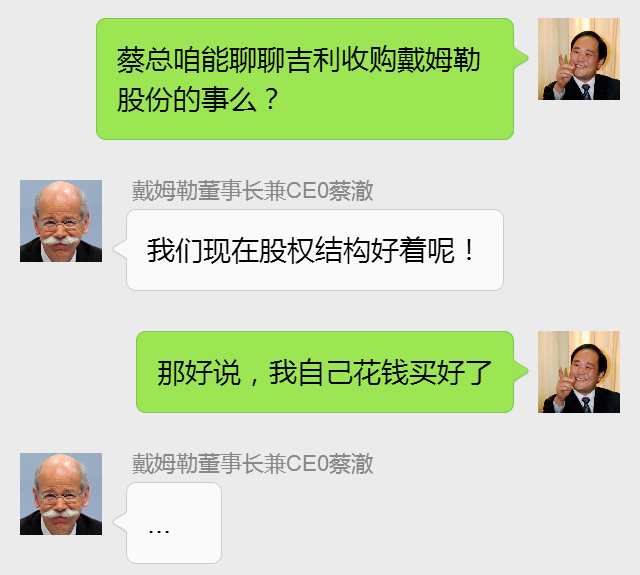 一姐点评:无论说李书福是在为吉利未来的全球化做铺垫,还是为吉利新能源汽车的发展做努力,能够成为戴姆勒的大股东实在让人感慨他的气魄,如果一姐说李总这是花钱买技术,是不是更直白一点?以戴姆勒的盈利情况看,这买卖不亏!