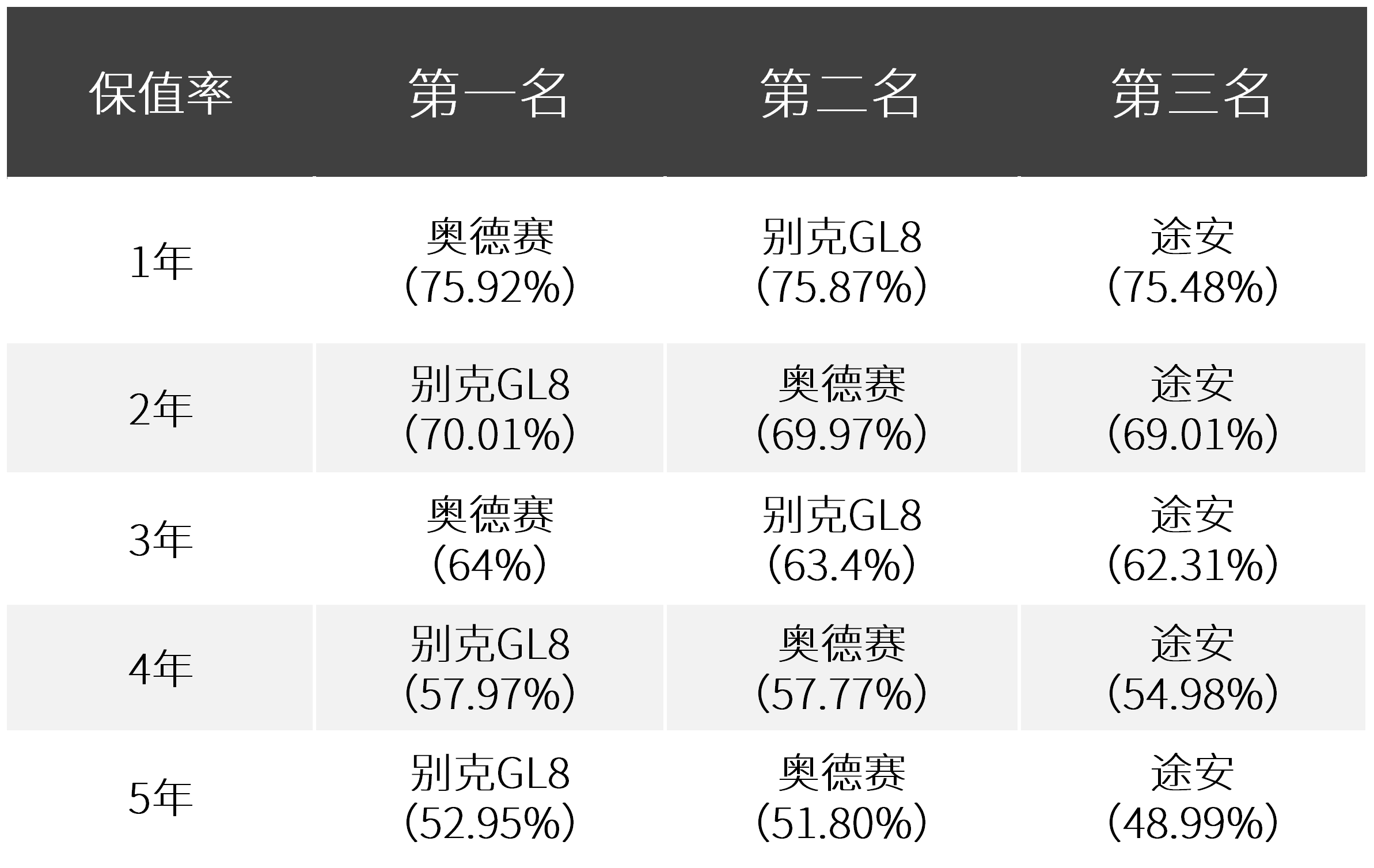 从去年发布的这个保值率排行榜来看,本田奥德赛与别克GL8的竞争非常激烈,分别牢固车龄1-5年保值率的前两名。它们都凭借着舒适的乘坐感受,丰富的配置等特点成为了消费者眼中的热门车辆。