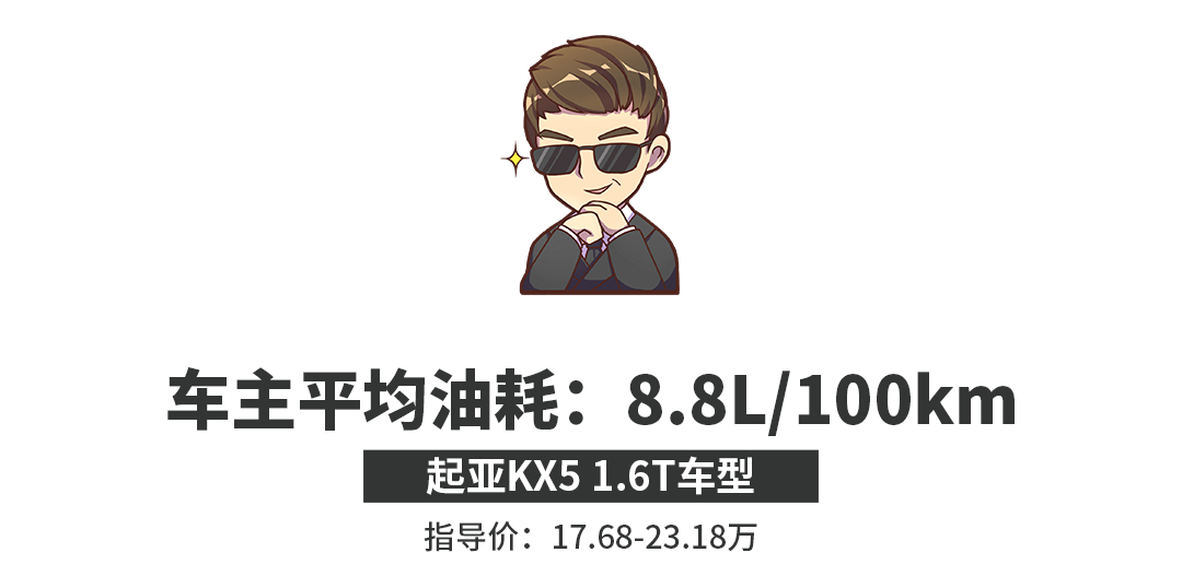 在涡轮增压的加持下,1.6T发动机在1500rpm之后便可释放充足的动力,车主平均百公里油耗为8.8L。这样看来,尽管起亚KX5没有特别突出的杀手锏,但是各方面实力均衡,不失为一款优秀的家用SUV。