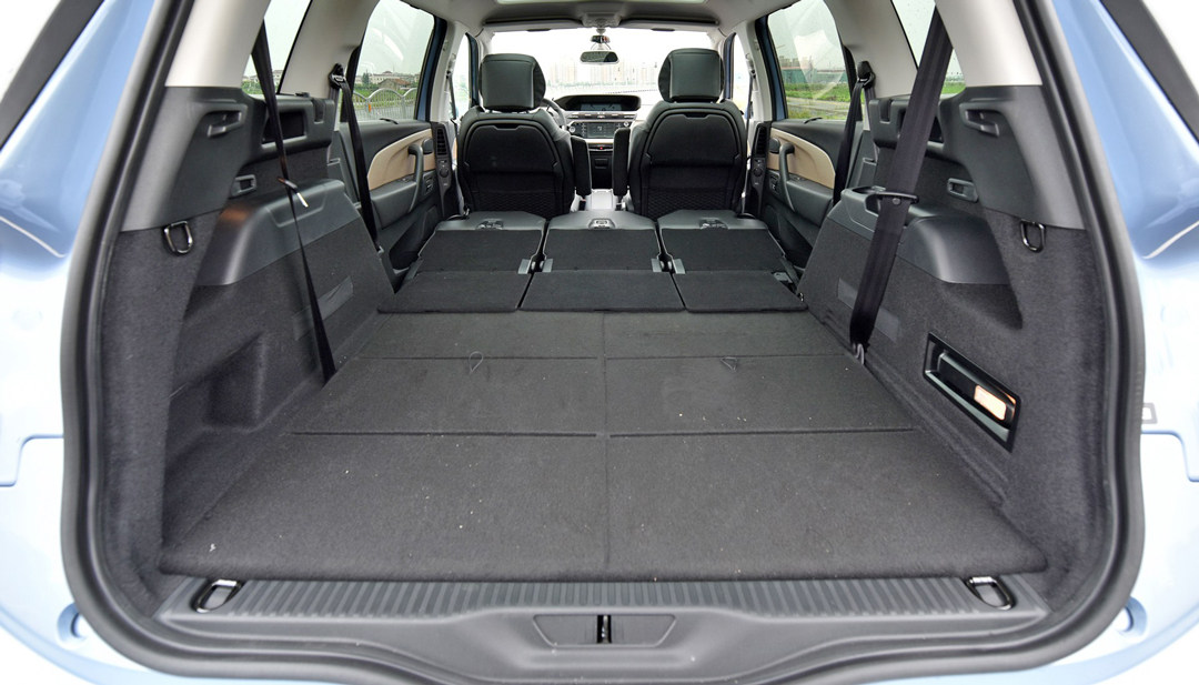 毕卡索的后备厢放倒第三排座椅后储物空间为732升,二三排座椅放倒后扩至最大空间可达2181升,测量最大纵深米1.93米,高度约0.85米,宽度约1.2米,方正的车身带来不错的空间。