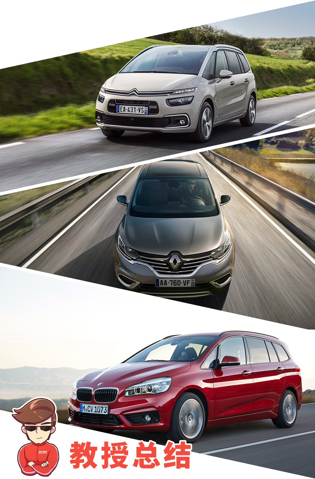 最后,哪一款值得买?法式的设计是见仁见智的,有的人会不喜欢,教授就特别欣赏,假如你喜欢法系的风格,预算又足的话,当然选Espace,空间更大,配置高,而毕卡索也是个很有趣又特别的车型,适合喜欢法系但预算不够买Espace的朋友;至于2系MPV,毕竟是一线豪华品牌,价格当然高一点。