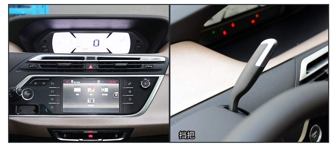 毕卡索的方向盘款式跟DS相似,法系的内饰总是有很多看点,仪表盘被放到中控屏上方,这是不多见的,挡把布置在方向盘后方,但不是奔驰那种怀挡,顶配车型配备拨片换挡,中控用上很多软质材料,手感不错。