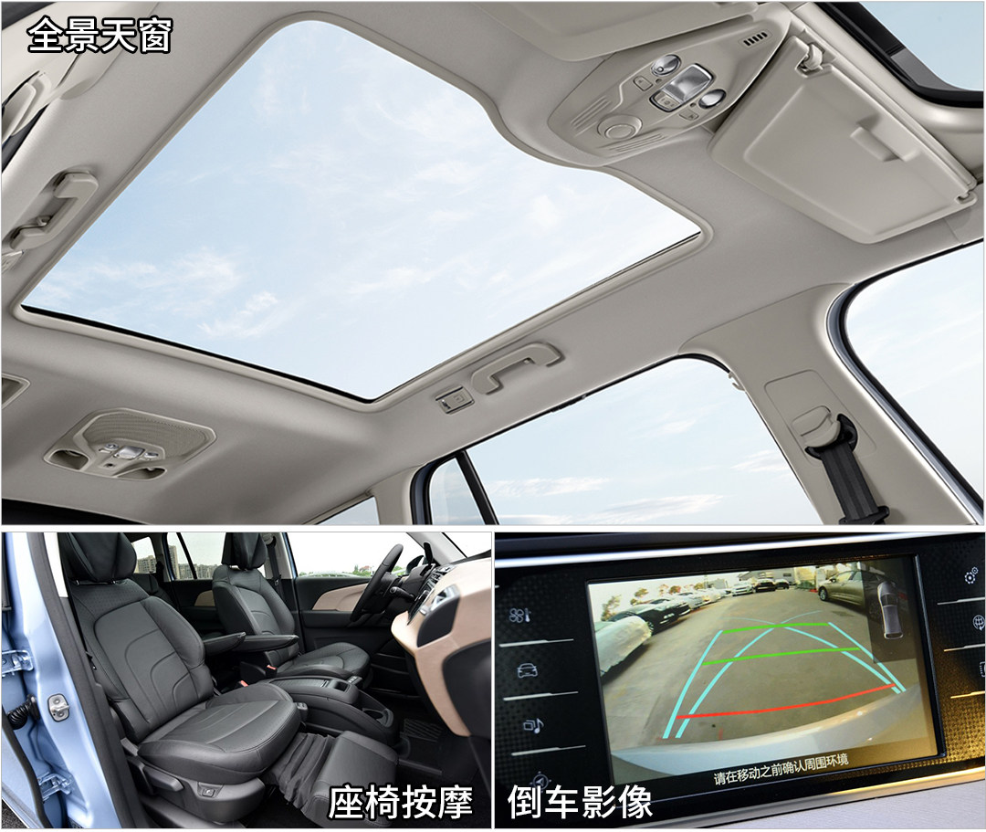 而2系MPV有点不足是倒车影像需要选装,要大几千,对于一辆MPV来说有点不应该,同是选装项有点多,感应后备厢、无钥匙进入、真皮座椅、LED大灯等,前排座椅加热也要选装,而且并没有座椅按摩,配置高度不如毕卡索,毕竟是宝马,还是进口的。