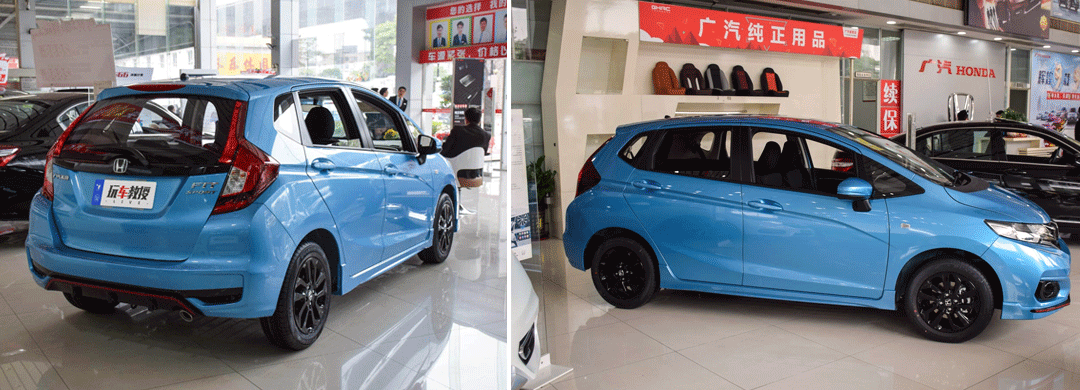 现款飞度与美版的飞度车型共享了外观的细节设计,新的蜂窝状进气格栅,配合潮跑版车型特有的下包围套件,而且在前唇还加入了红色线条装饰,其冲击力相当强!而熏黑色的轮毂绝对有个性,尾部的后扩散器也加入了红色线条描边细节,带有一定的性能味!