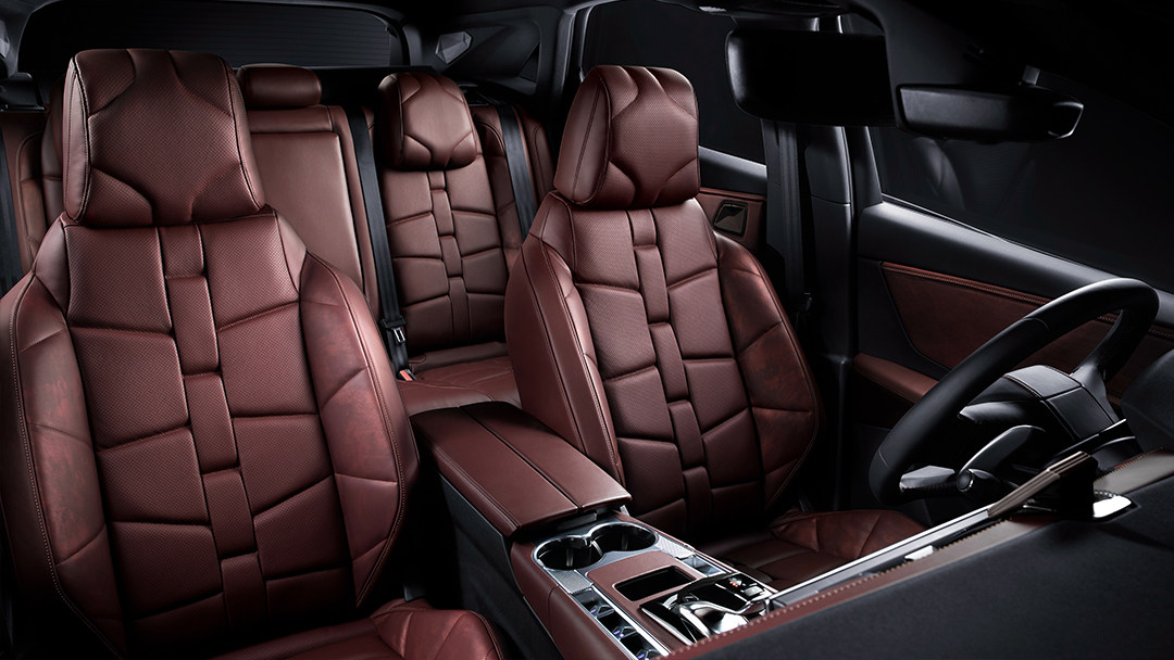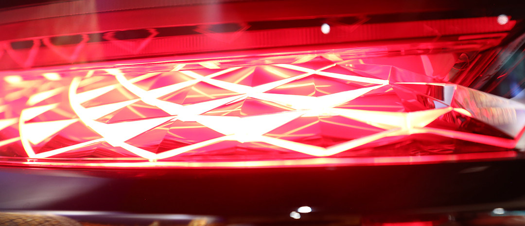 尾灯同样吸睛,造型元素取卢浮宫玻璃自金字塔,仔细看真的像很多个红色金字塔矗立在沙漠中,也像千万鳞片组合在一起,精致夺目,对灯设计的造诣恐怕要超过“灯厂”了,