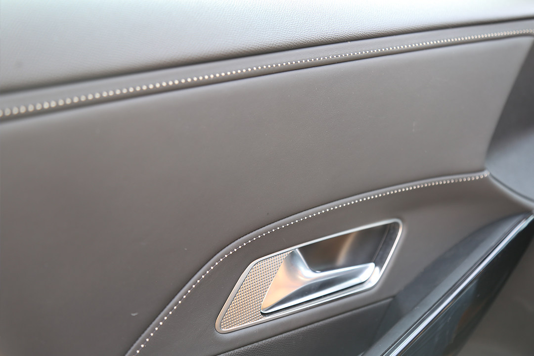 另外门板、中控台上丝毫不吝采用真皮覆盖,也是用上了珍珠缝线工艺,另外还配备了FOCAL开发的Electra高端音响,现场体验音质非常棒
