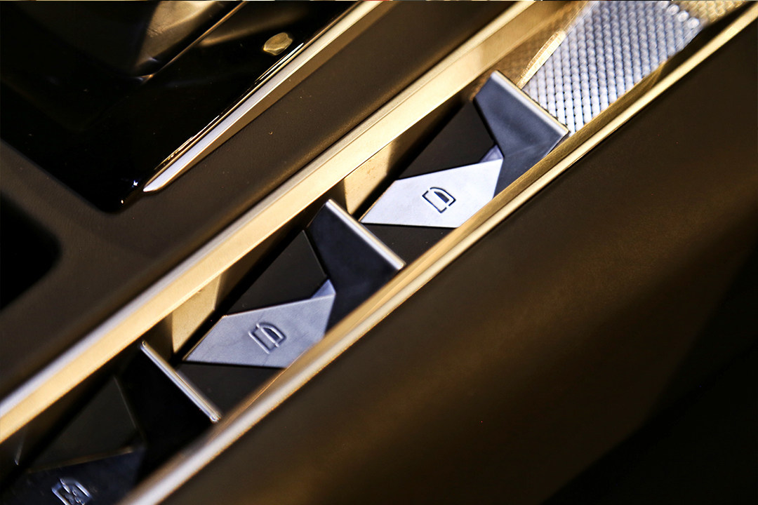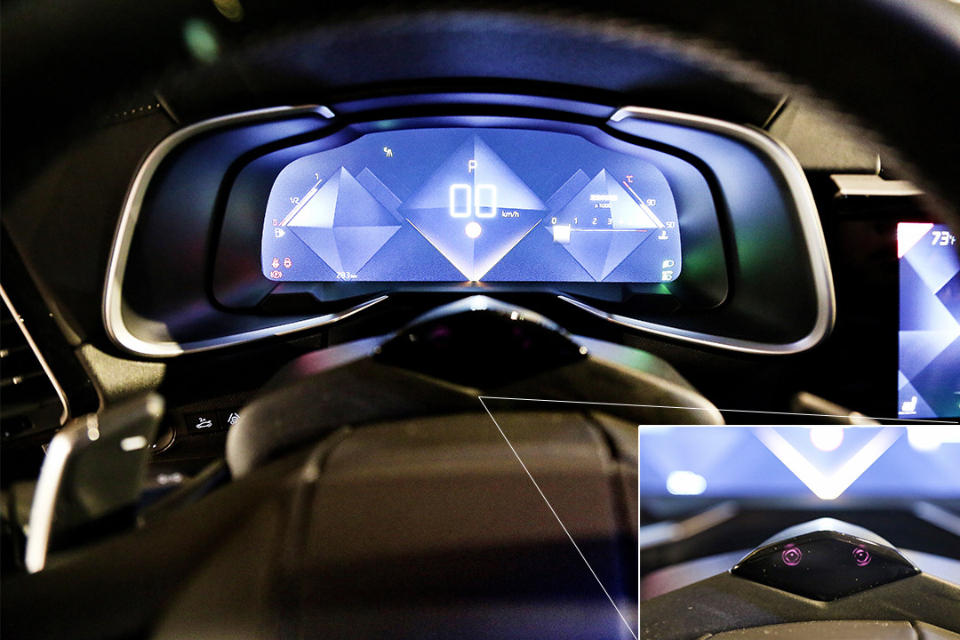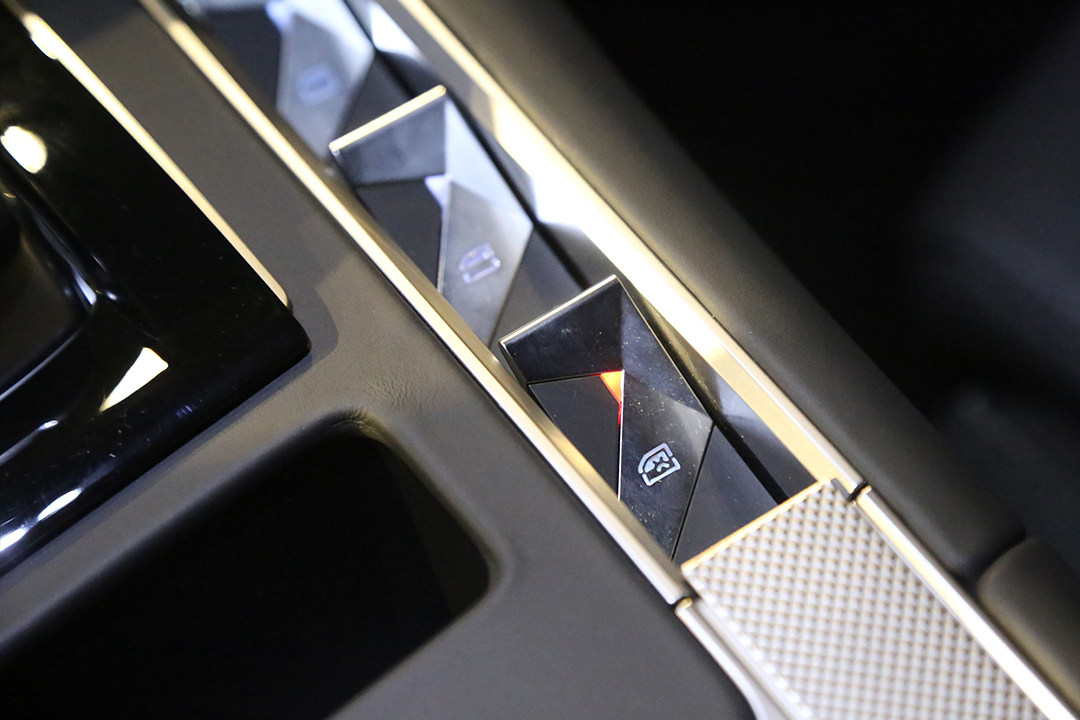 另外一个设计元素“巴黎饰钉”,灵感来源是法国奢饰品,主要在另外方向盘的两侧和中控台的地方的轮轴,看起来也是很精致有质感。