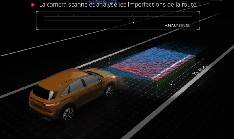 主动感应式悬架,在内后视镜处配备一个摄像头,对形式的路口进行检测,对悬架做出实时调整,根据路面状况改变悬架阻尼支撑力度,所以DS7在很多路面都有着很好的舒适性,这样的配置往往使用在豪华车型上。
