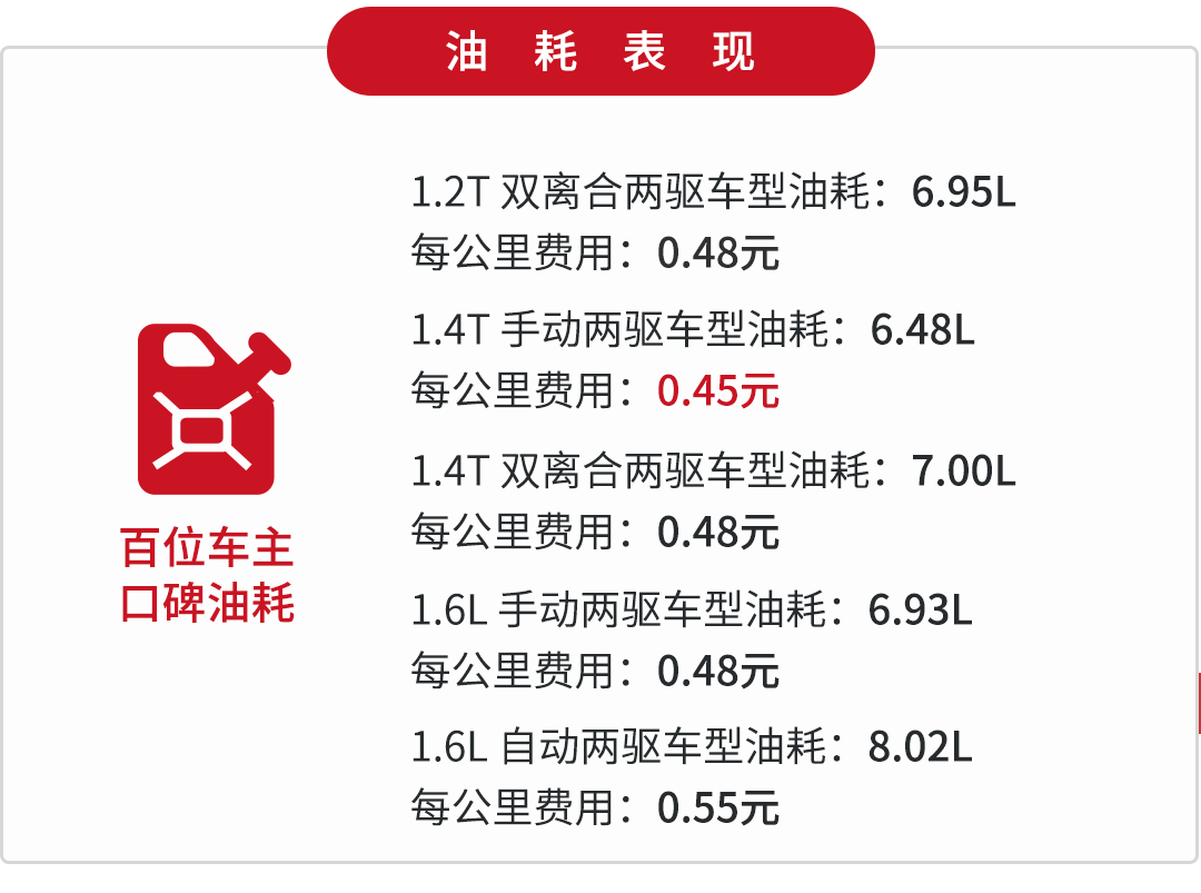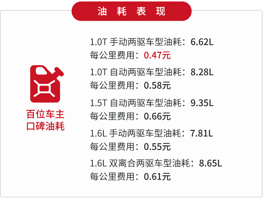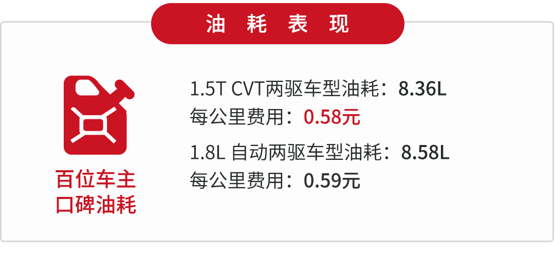 杰德的油耗没有丢日系车省油的金字招牌,1.5T发动机代号为L15BF,采用了直喷技术。杰德的整备质量在1485kg-1557kg,算是比较重的一款车型,还好采用了CVT变速箱,无级变速的优点帮助其更好地匹配出一个经济转速。